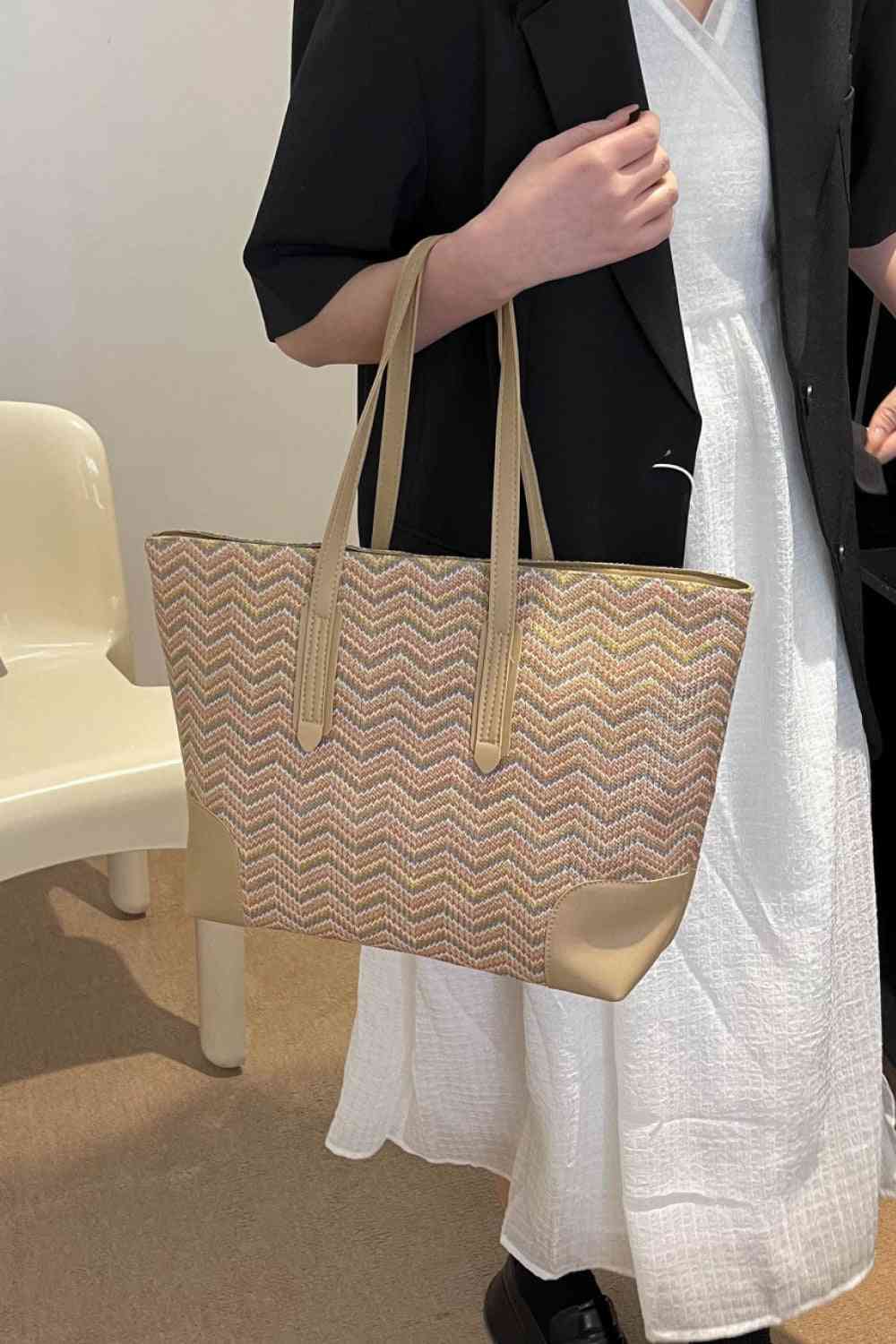 Chevron Straw Tote Bag
