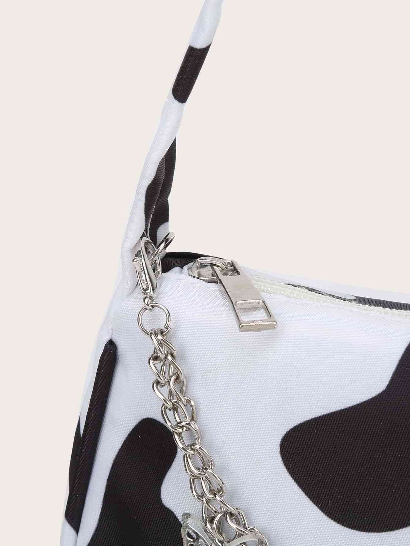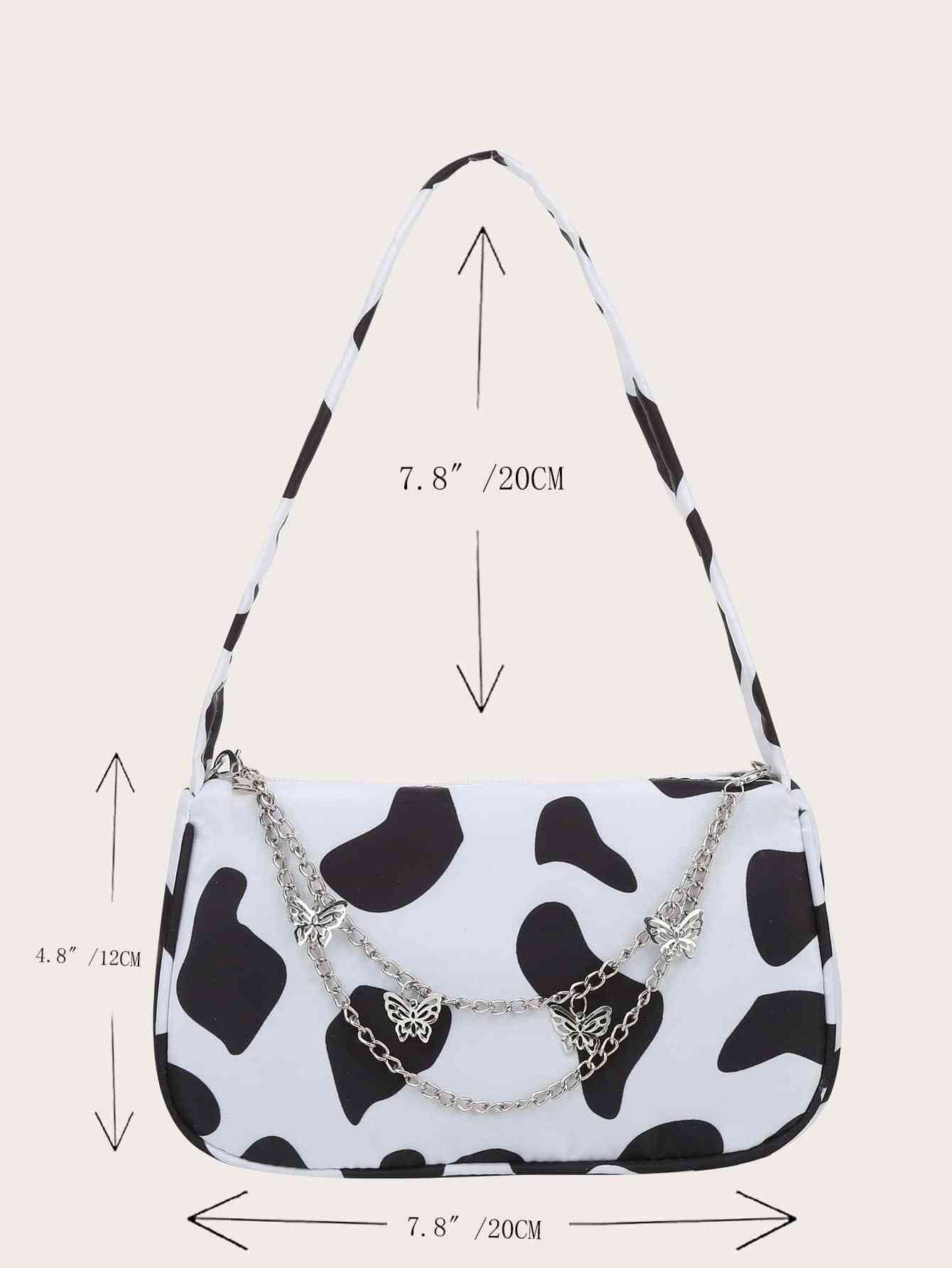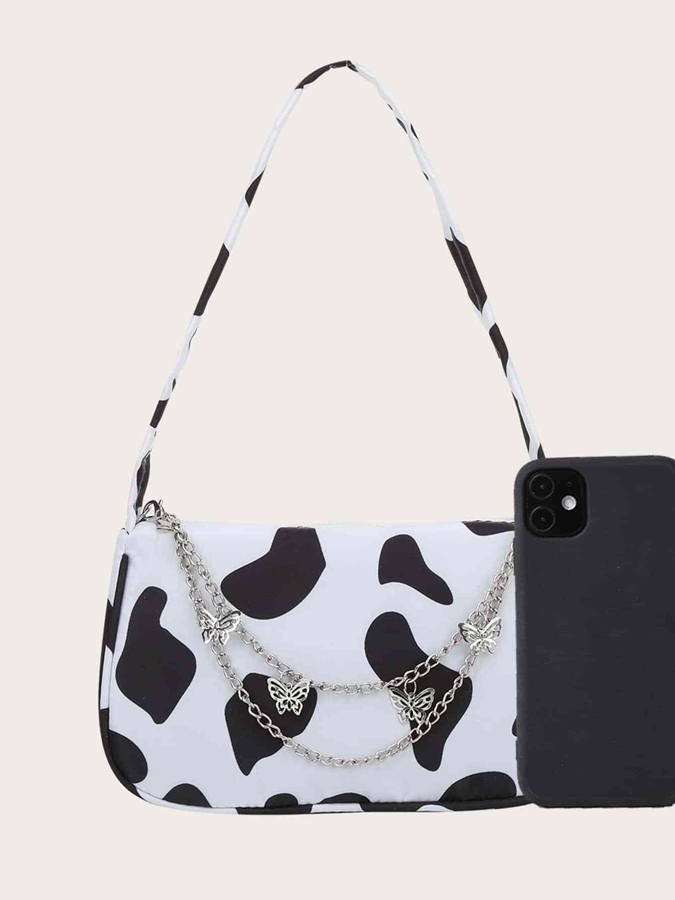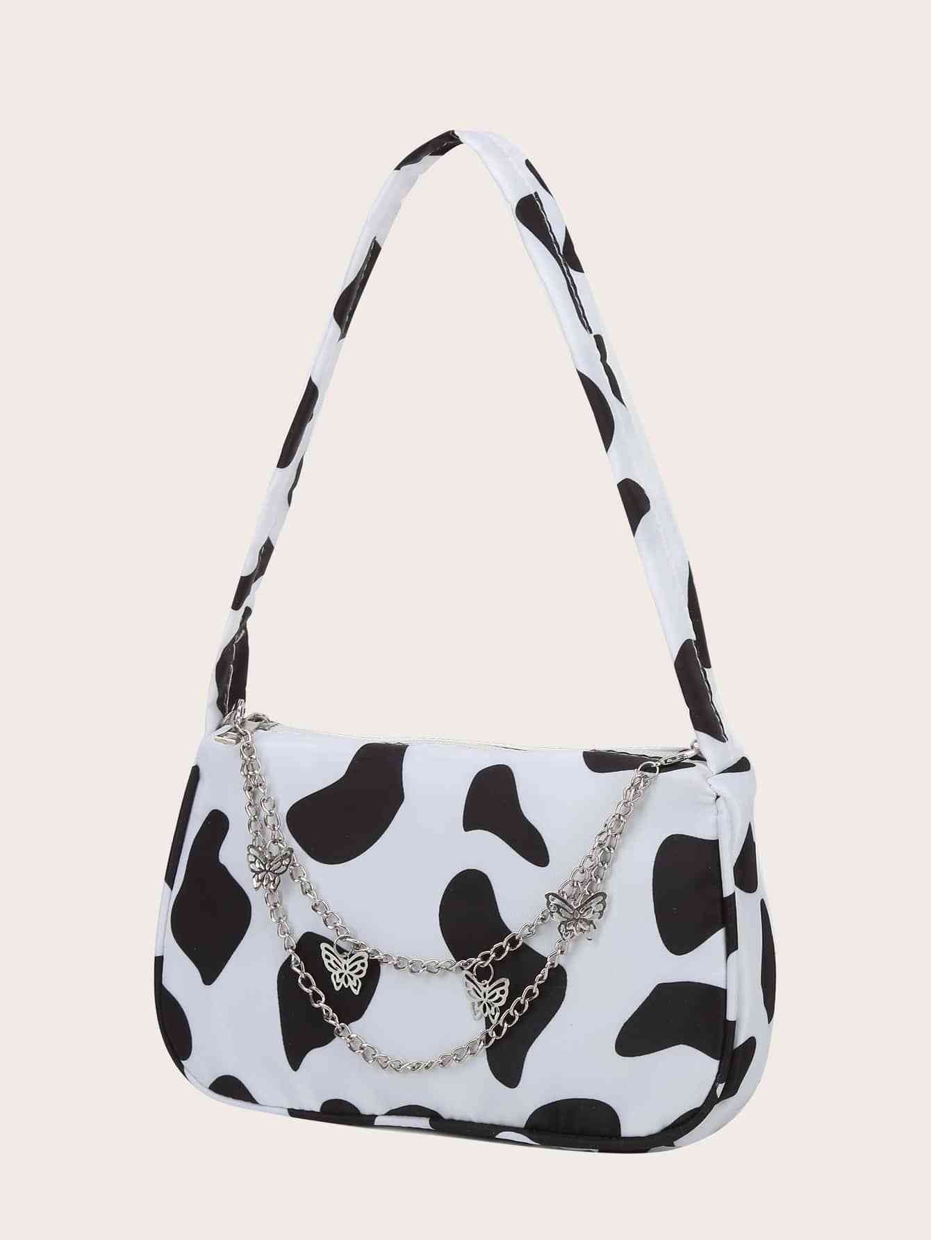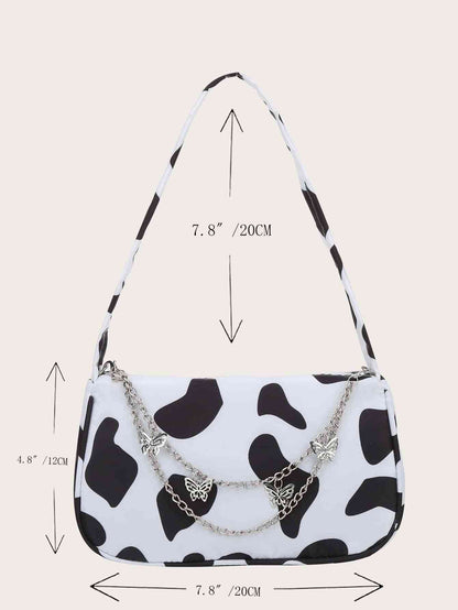 Cow Print Butterfly Charm Shoulder Bag