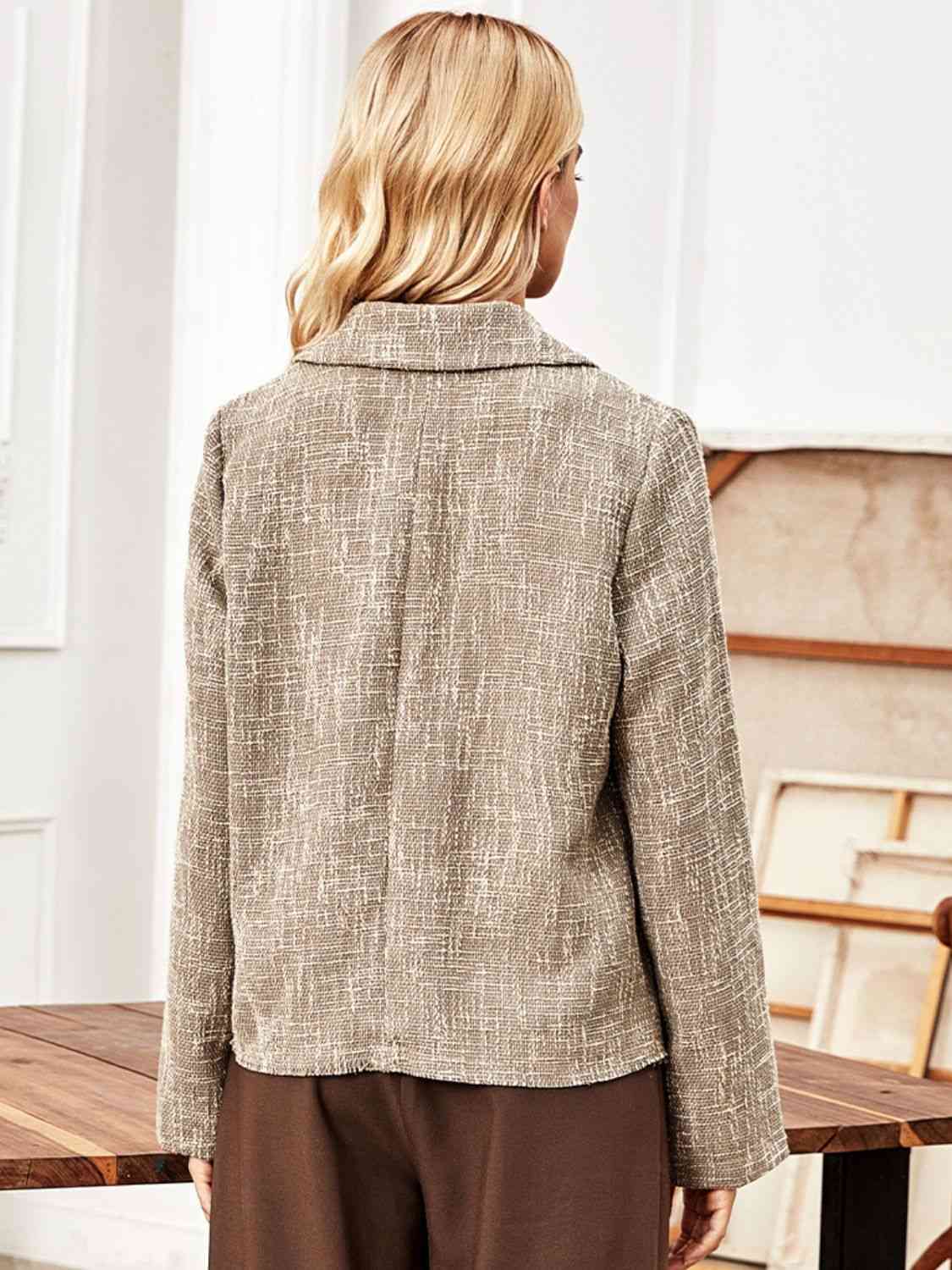 Lapel Collar Raw Hem Long Sleeve Blazer