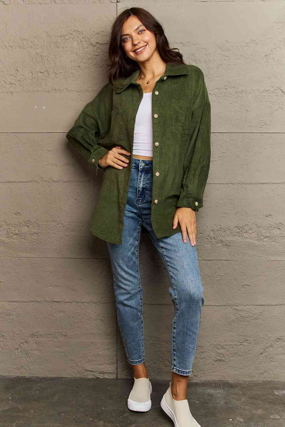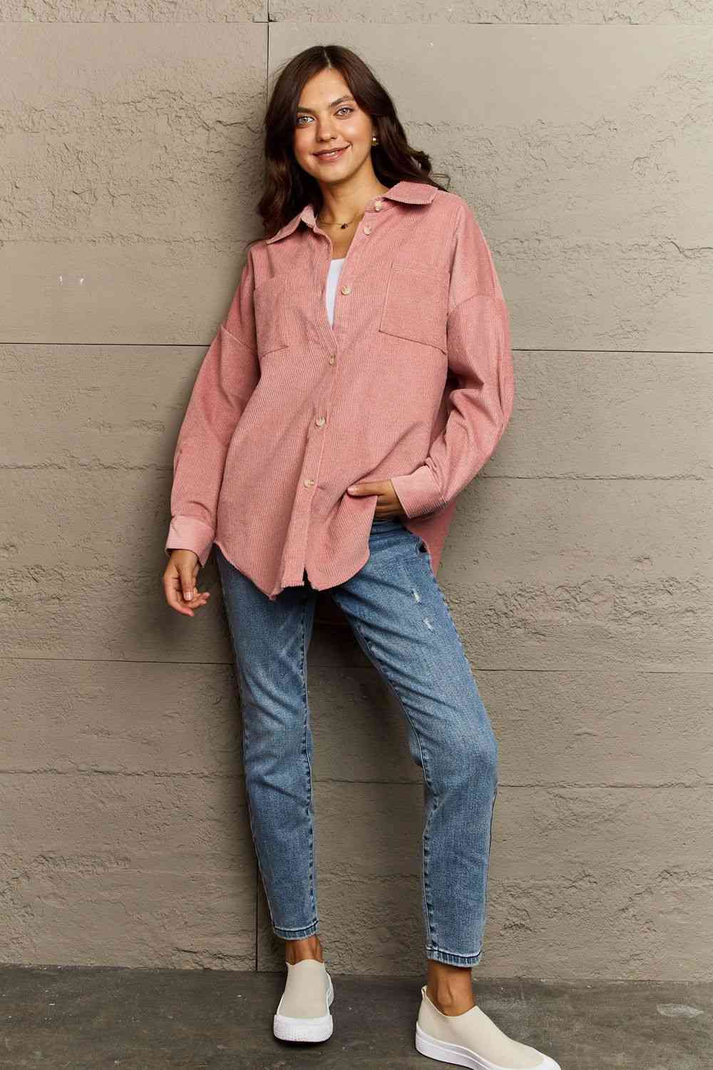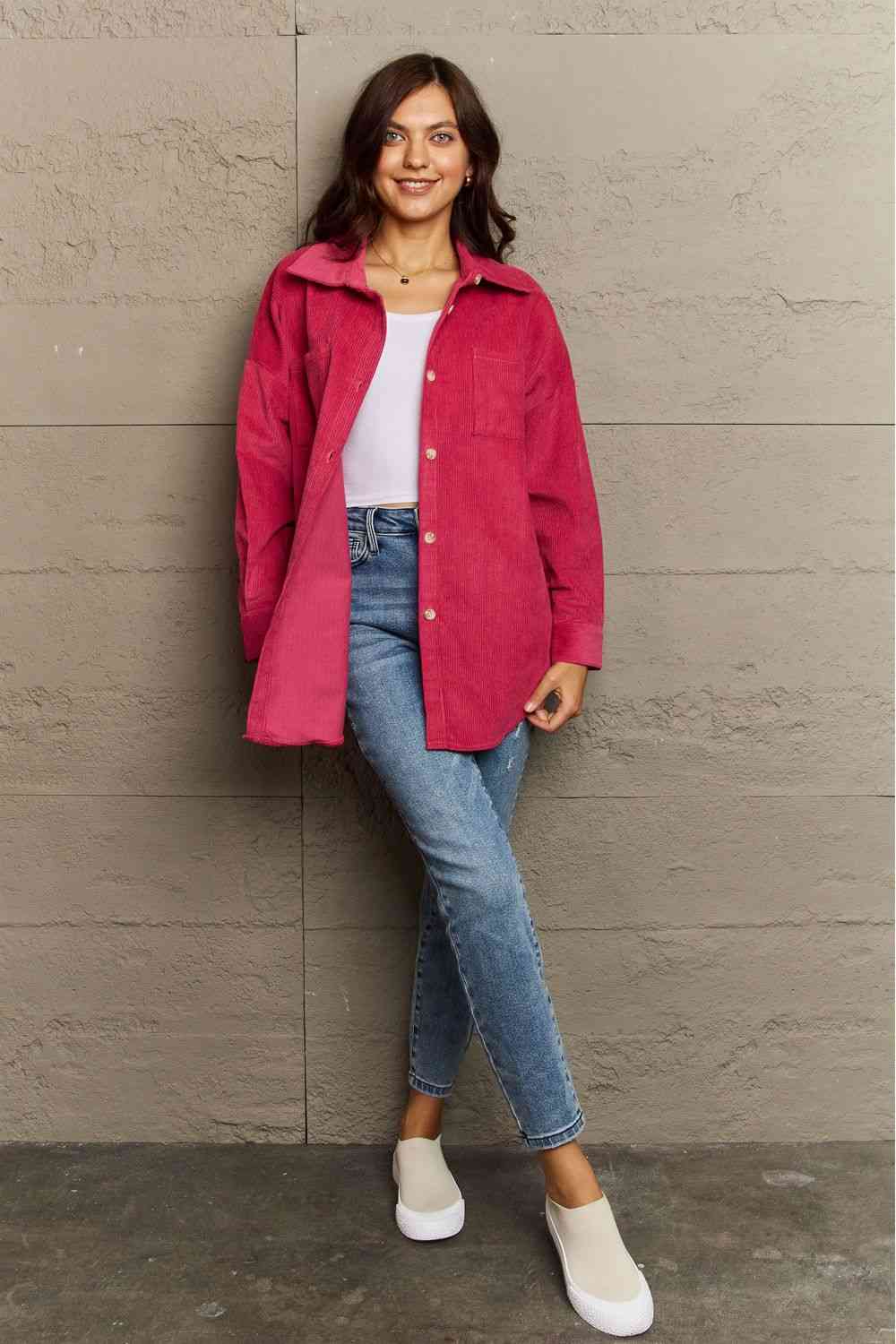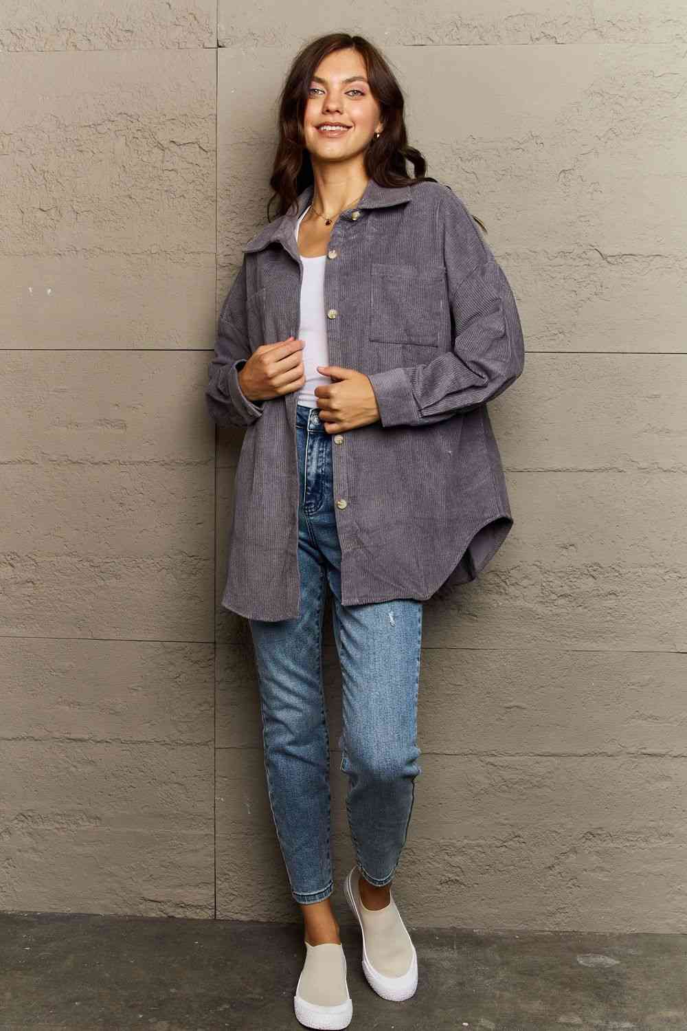 Ninexis Collared Neck Dropped Shoulder Button-Down Jacket