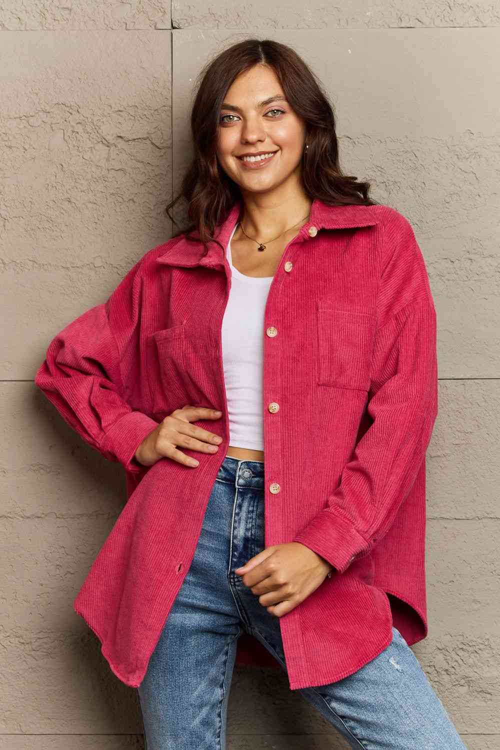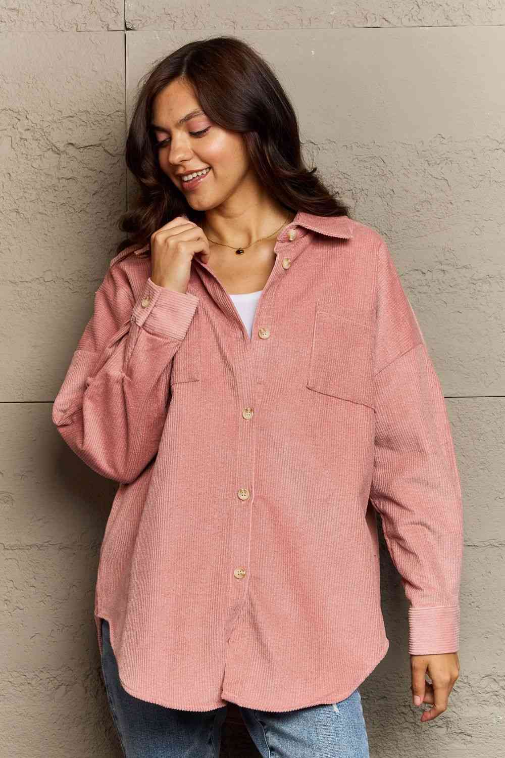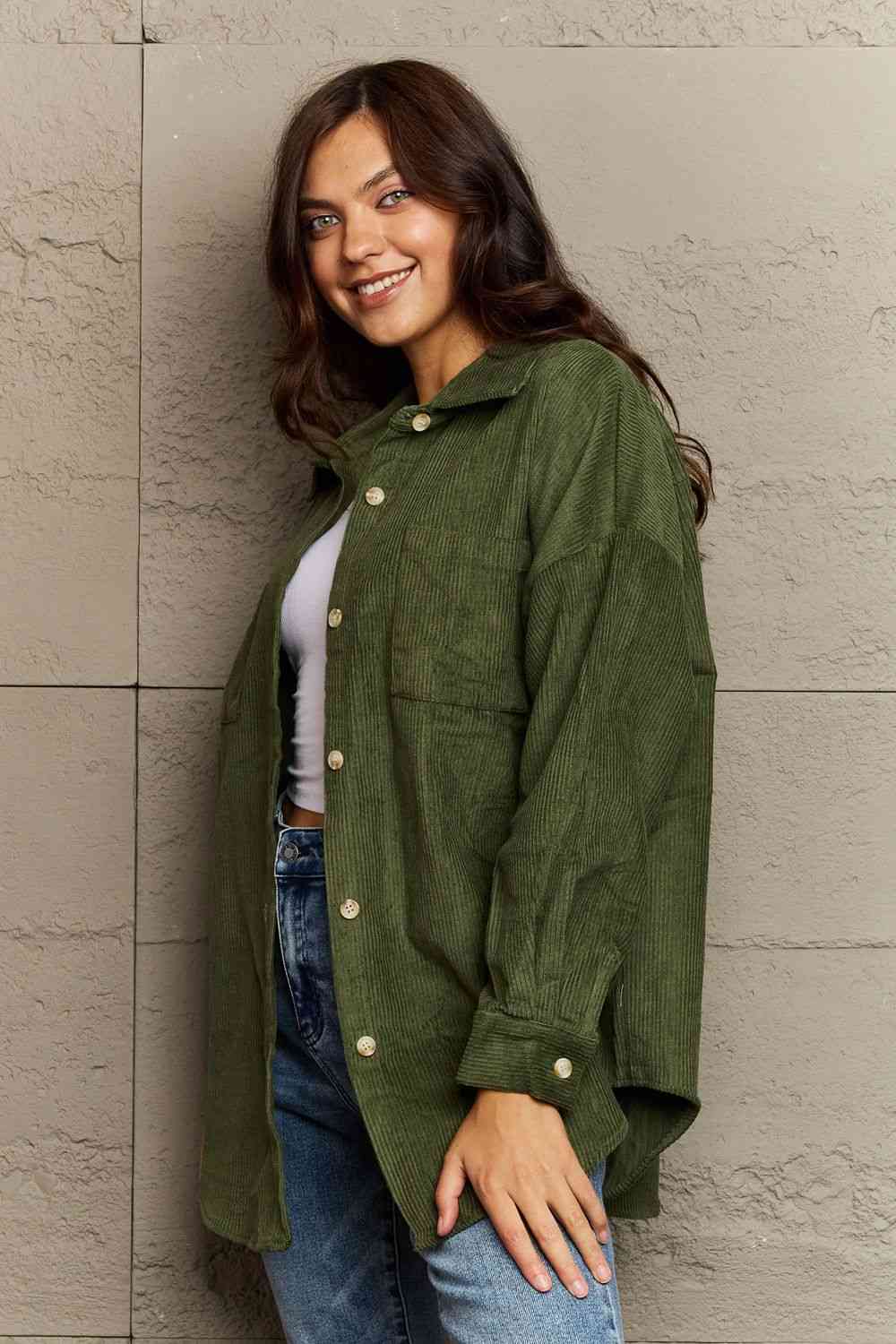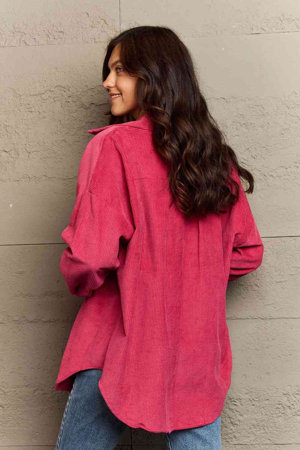 Ninexis Collared Neck Dropped Shoulder Button-Down Jacket