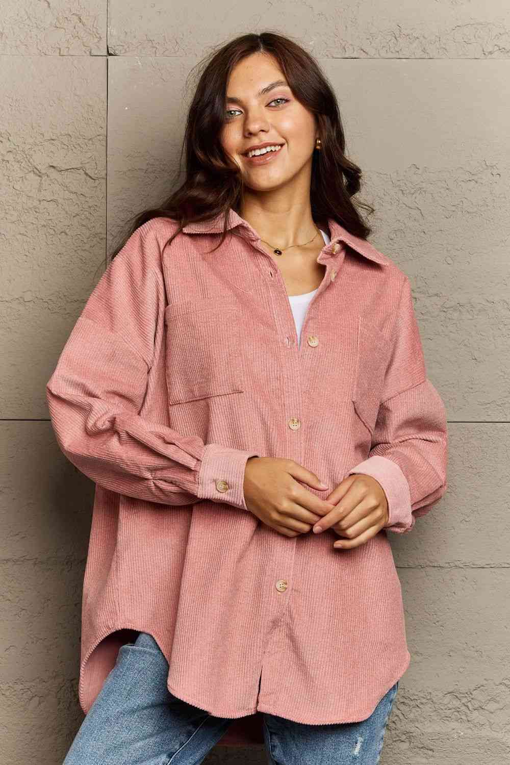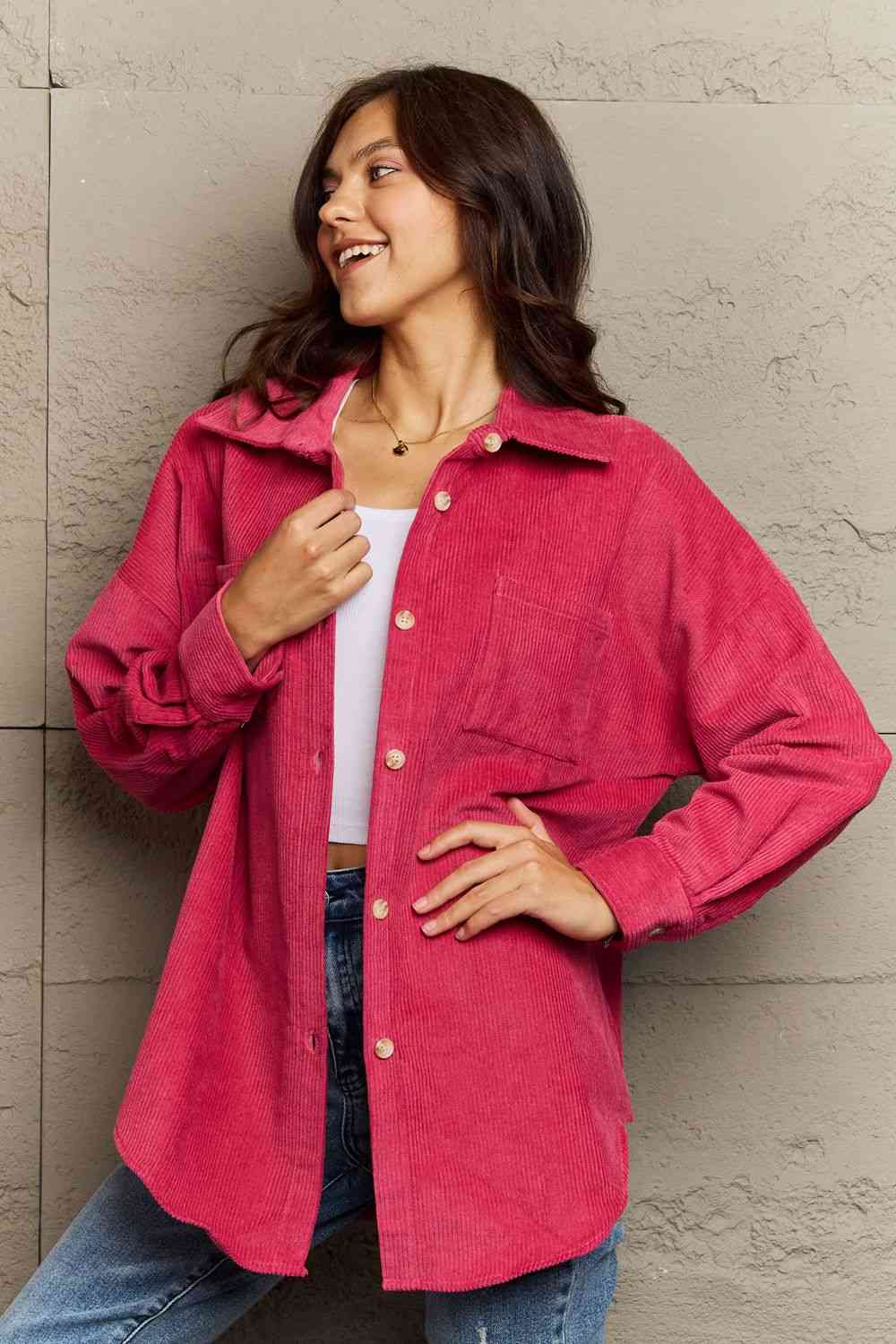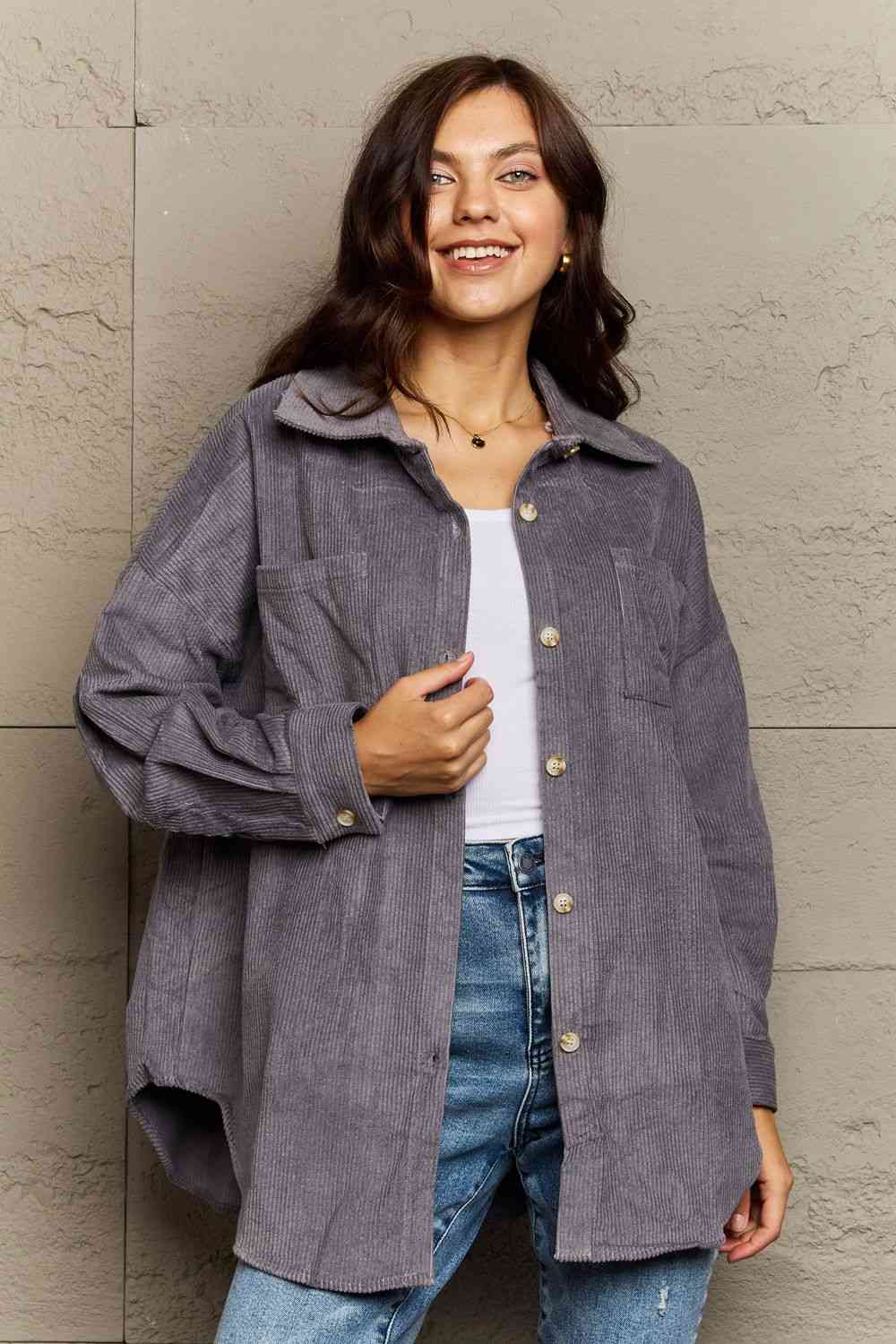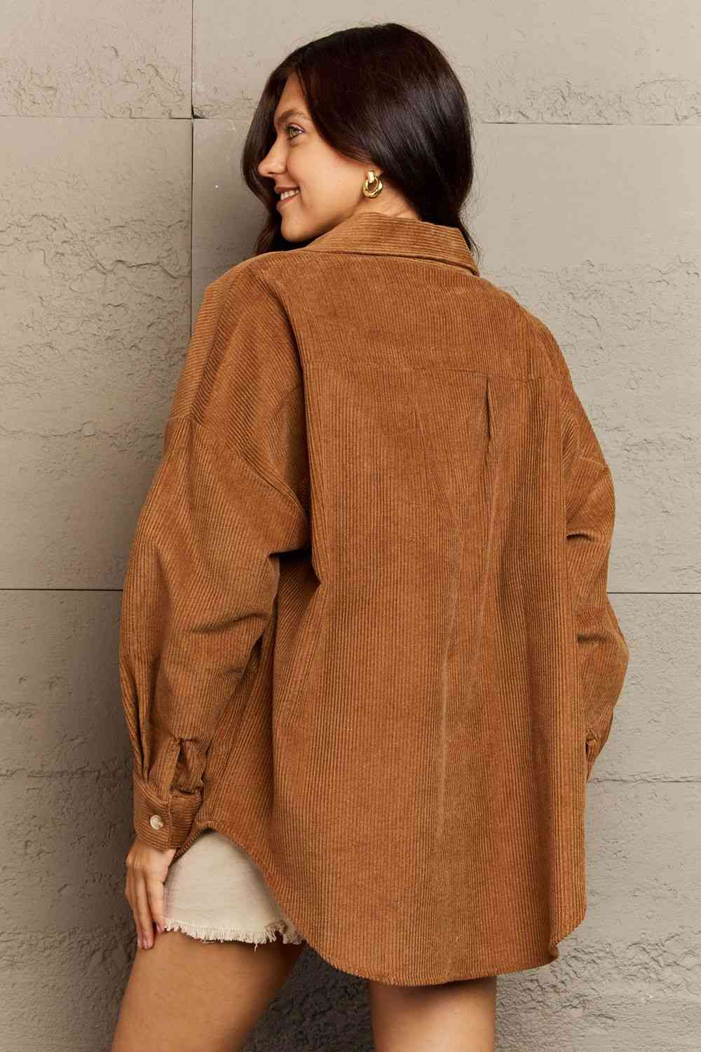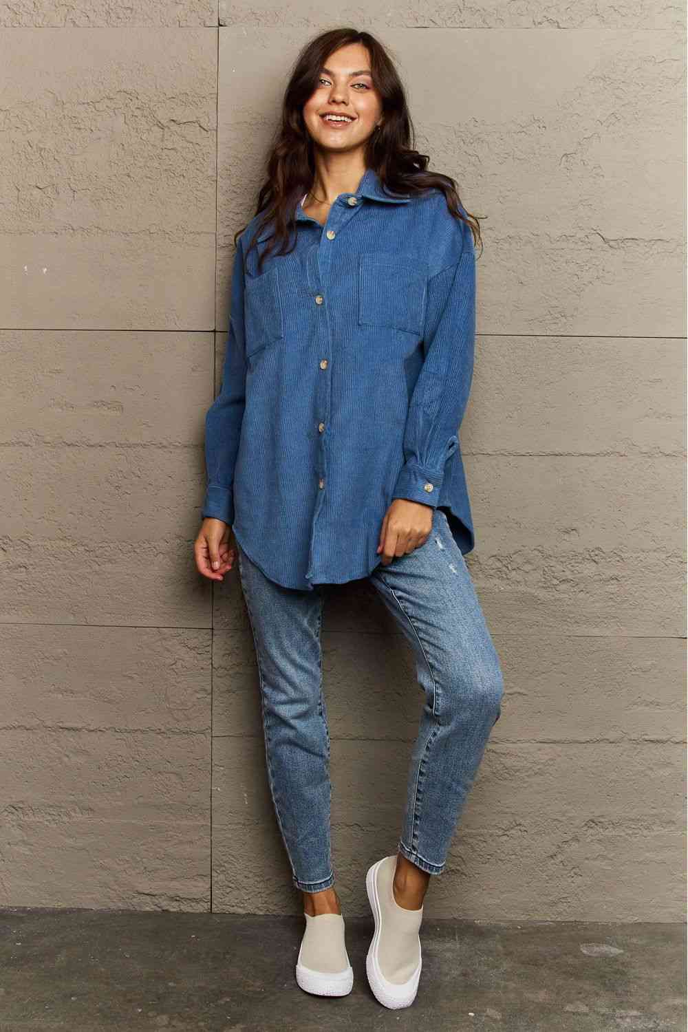 Ninexis Collared Neck Dropped Shoulder Button-Down Jacket