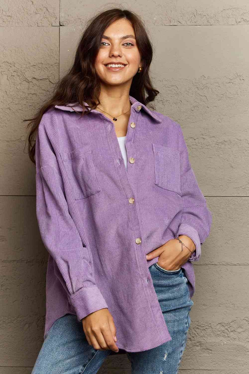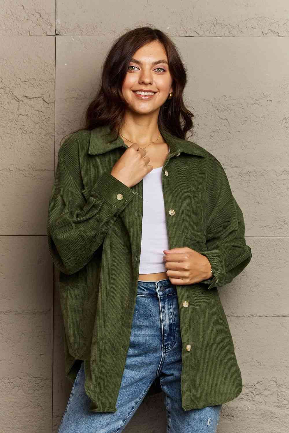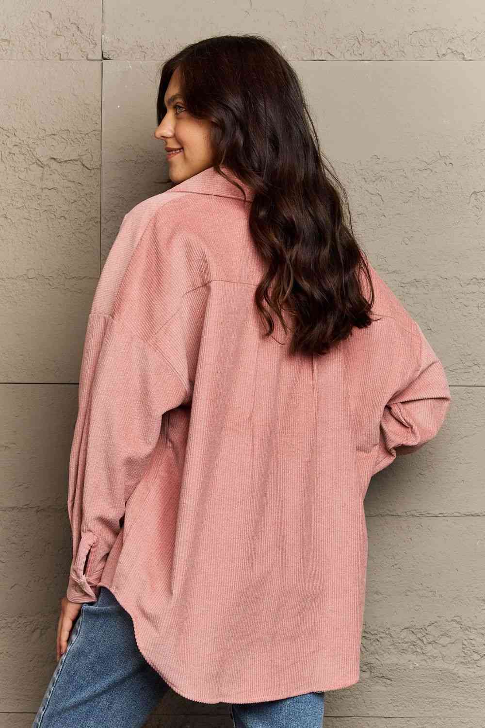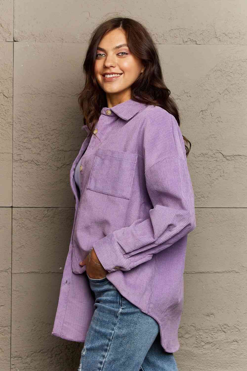 Ninexis Collared Neck Dropped Shoulder Button-Down Jacket
