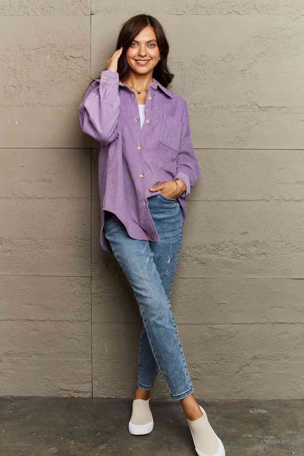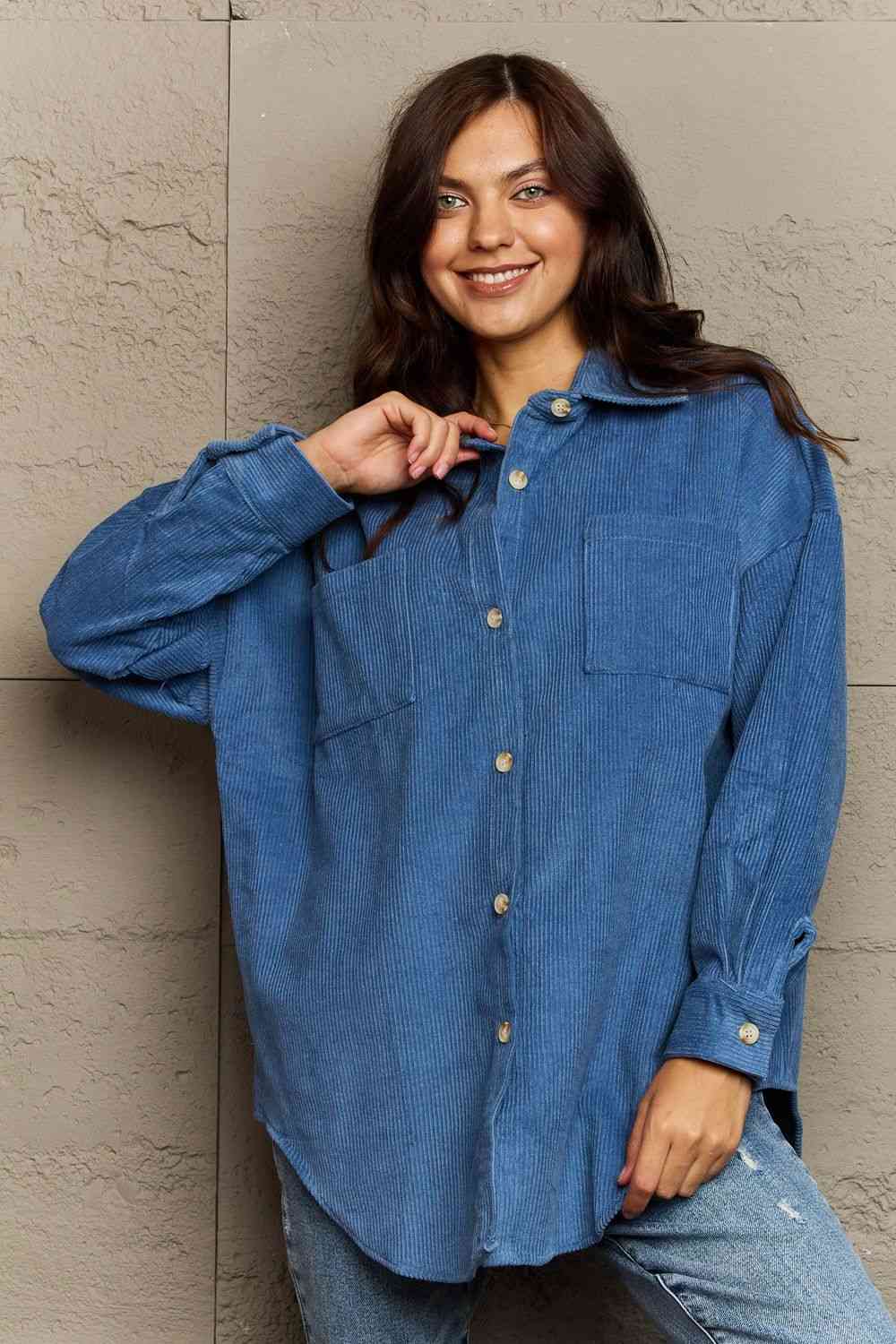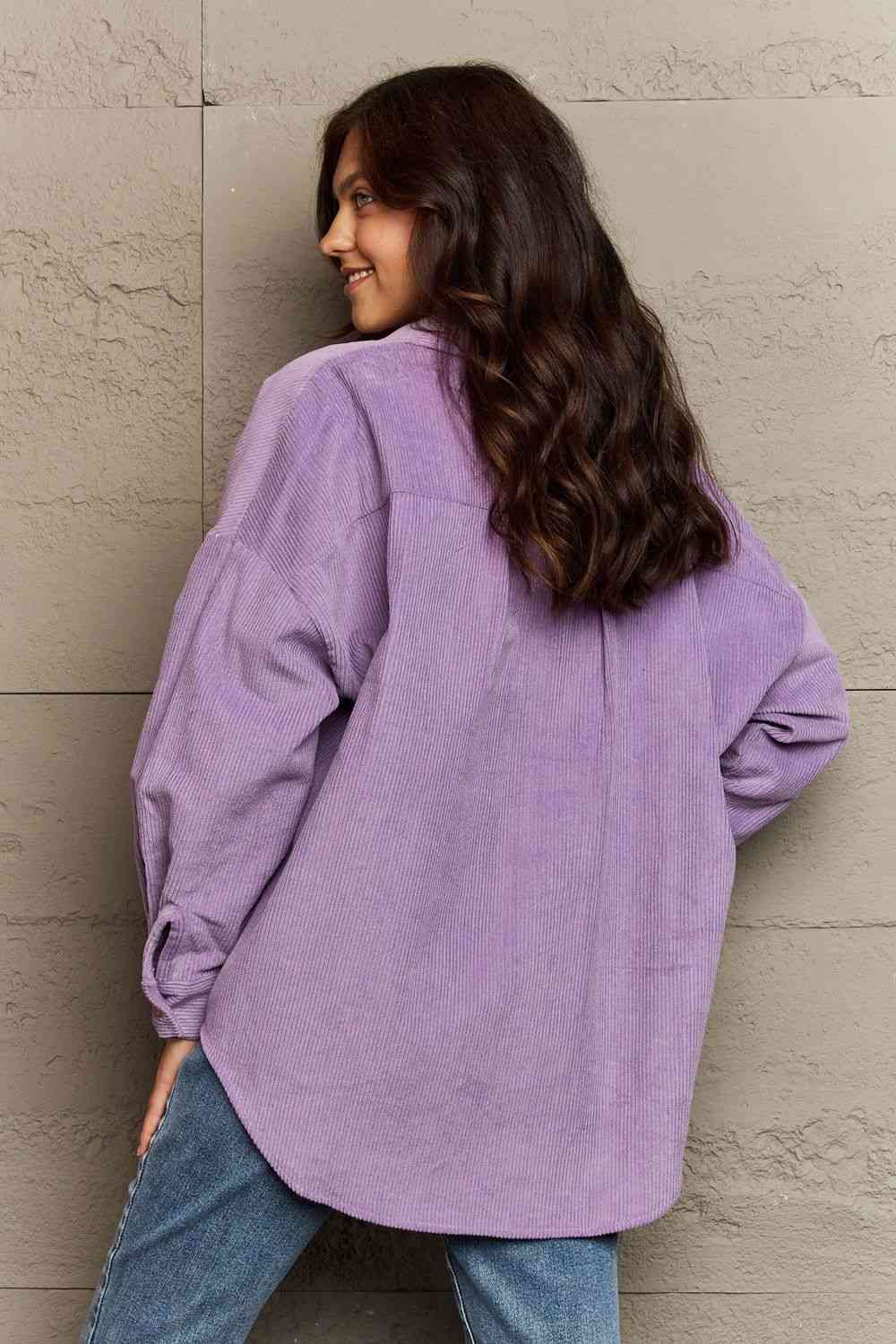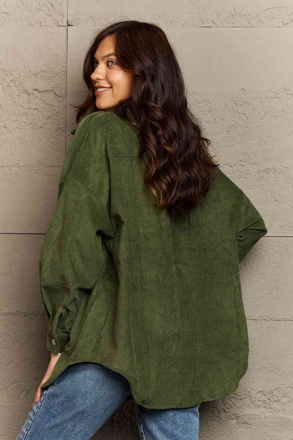 Ninexis Collared Neck Dropped Shoulder Button-Down Jacket
