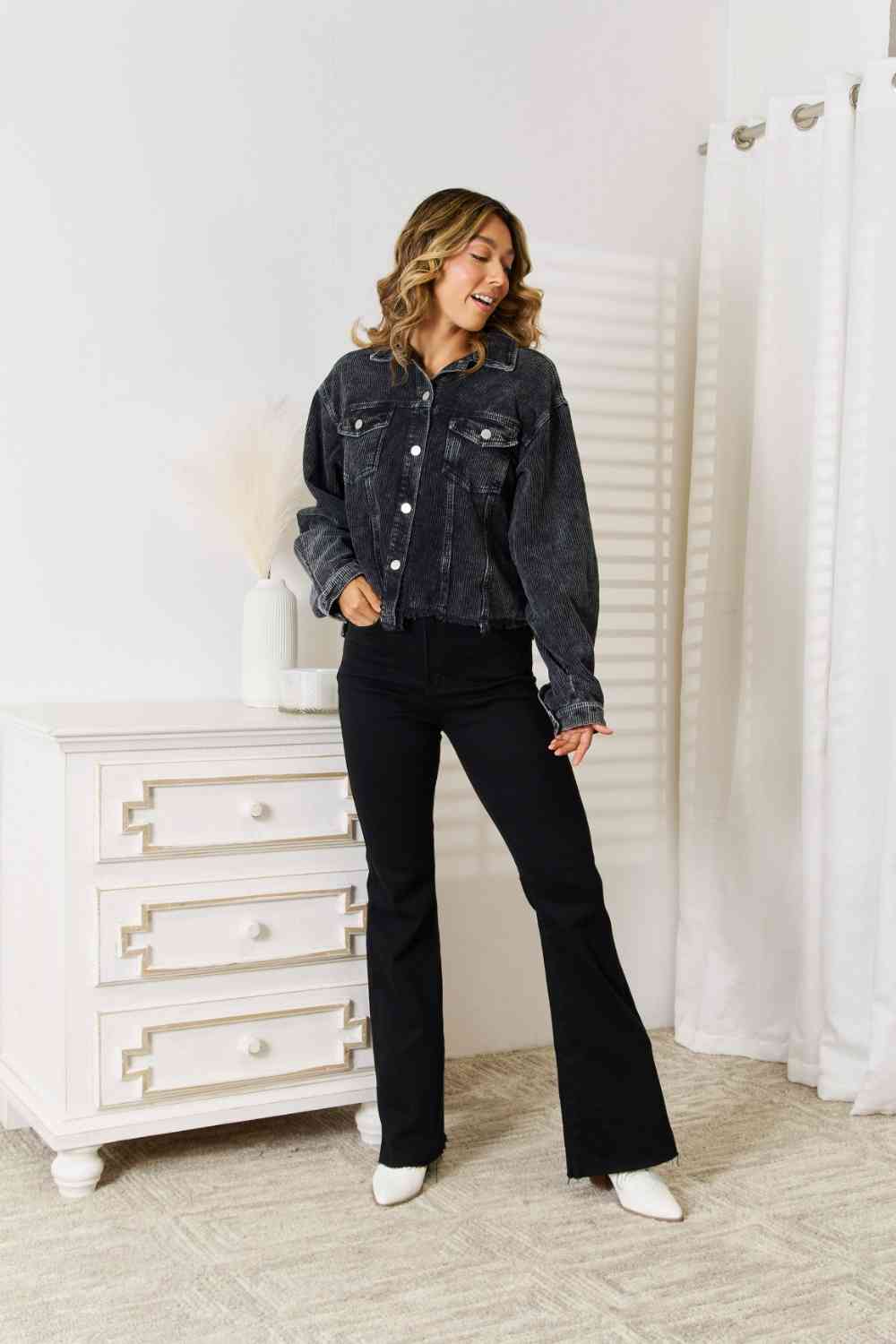 Raw Hem Button Down Jacket